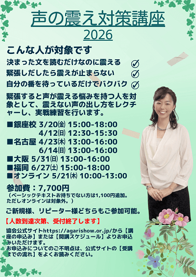 多くのみなさまと、楽しく声の震え克服できることを楽しみにお待ちしております!